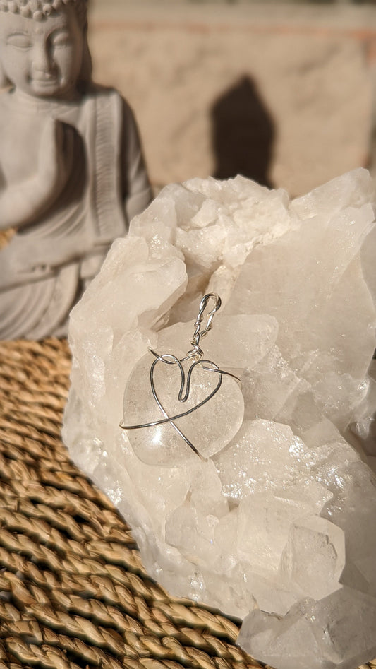 Quartz Heart Pendant | Silver Wire Wrapped Necklaces | Crystal Necklace | Healing Jewelry |