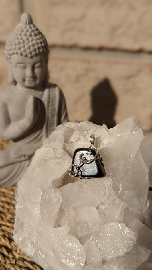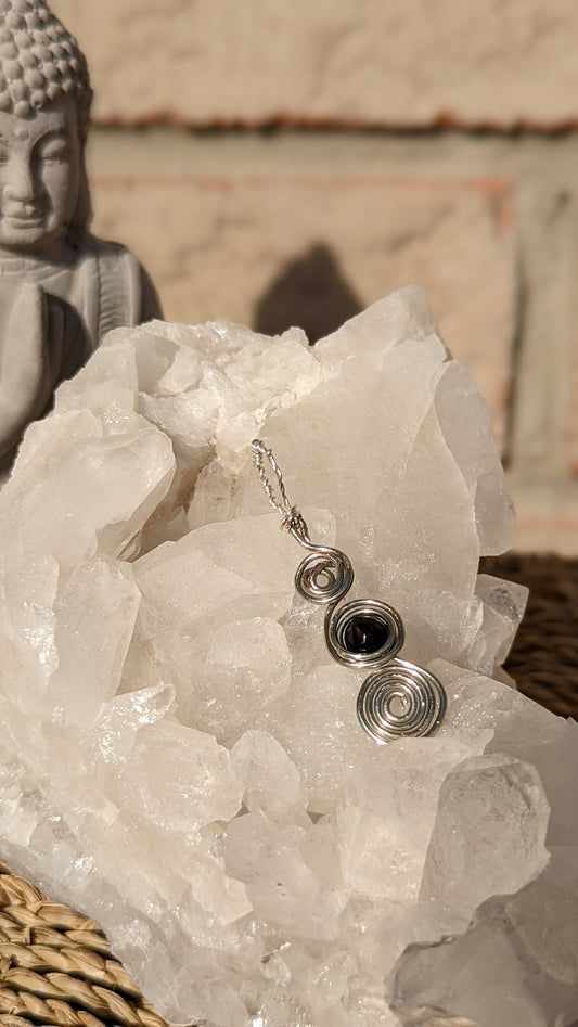 Black Onyx Abstract Pendant | Silver Wire Wrapped Necklaces | Crystal Necklace | Healing Jewelry |