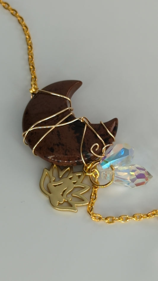 Mahogany Obsidian Moon Suncatcher || Mini Suncatcher || Mini Car Catchers || Wire Wrapped Crystal Suncatcher || Boho || Genuine Crystals || Healing Décor || Inspired Vibrations
