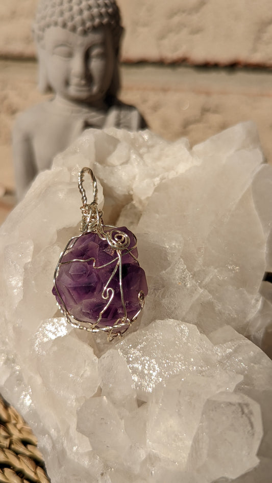 Amethyst Cluster Pendant || Silver Wire Wrapped Necklaces || Crystal Necklace || Healing Jewelry || Inspired Vibrations