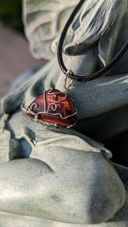 Red Tigers Eye Pendant | Silver Wire Wrapped Necklaces | Crystal Necklace | Healing Jewelry |