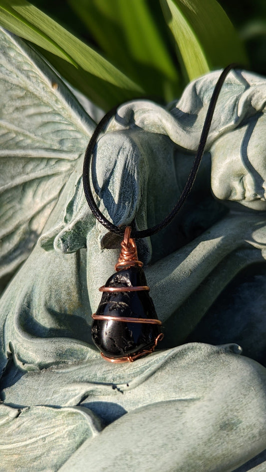 Shungite Pendant | Copper Wire Wrapped Necklaces | Crystal Necklace | Healing Jewelry |
