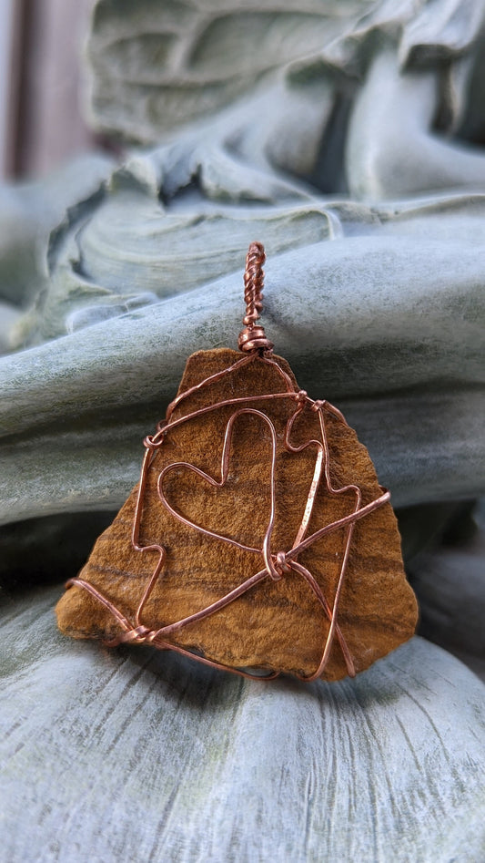 Tiger's Eye Heart Pendant | Silver Wire Wrapped Necklaces | Crystal Necklace | Healing Jewelry |