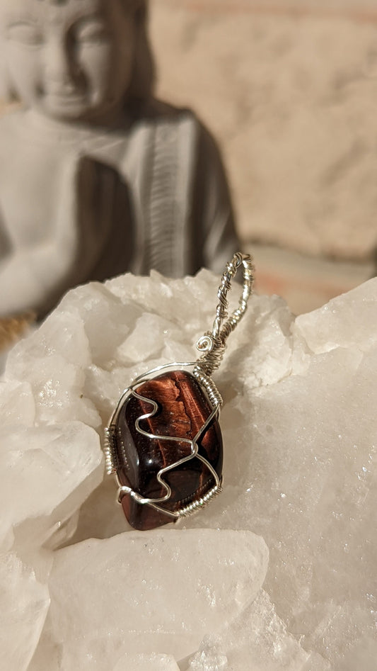Red Tiger's Eye Pendant | Silver Wire Wrapped Necklaces | Crystal Necklace | Healing Jewelry |